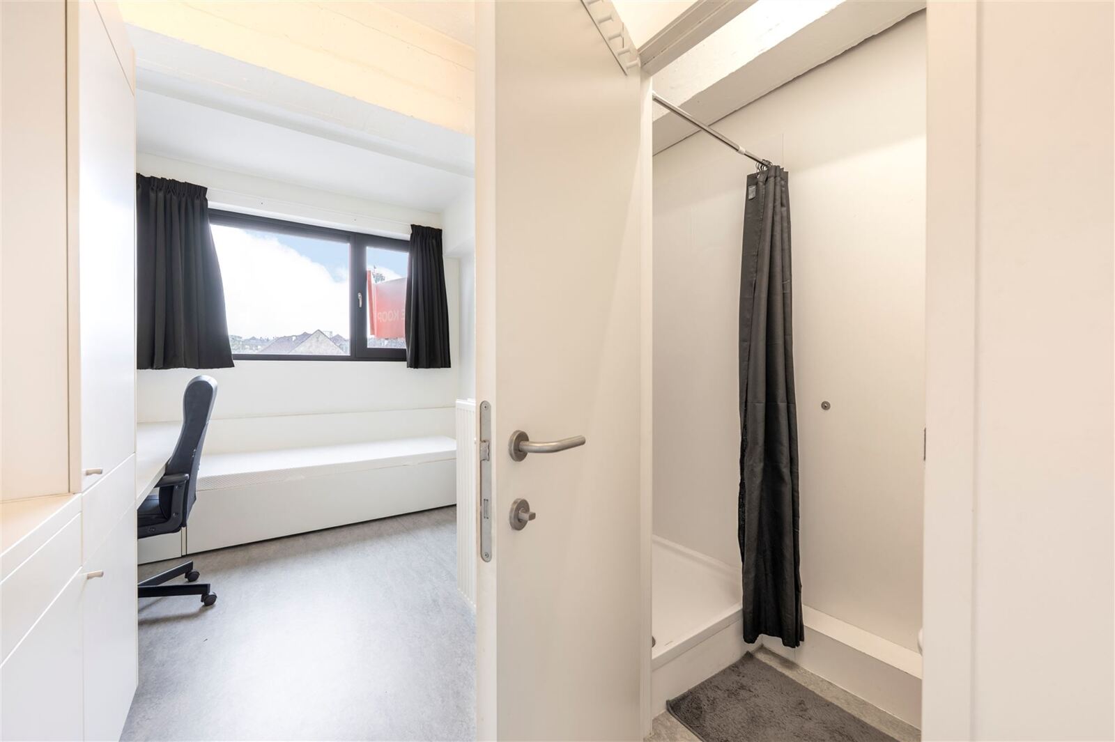 De kamer is volledig bemeubeld en beschikt over een eigen badkamer met douche en toilet.